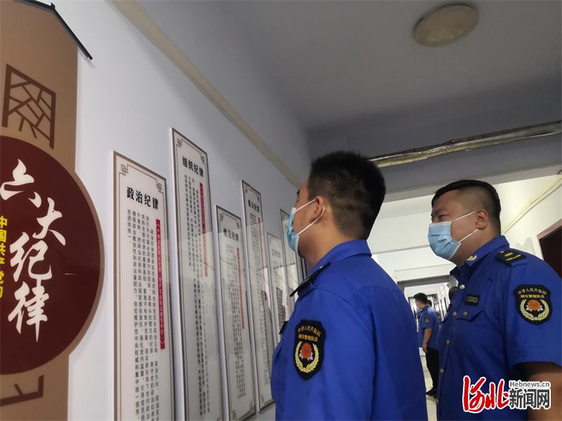圖為邢臺市城管局建筑垃圾管理服務(wù)中心利用樓道打造的廉政文化長廊。