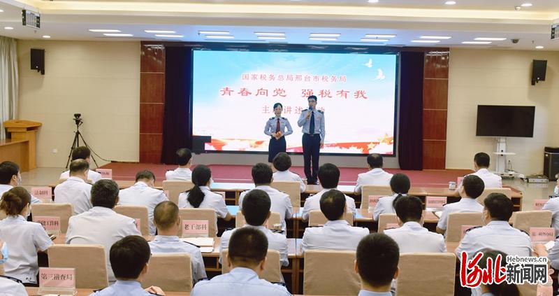 圖為邢臺(tái)市稅務(wù)局“喜迎黨的二十大——青春向黨 強(qiáng)稅有我”青年主題講述活動(dòng)現(xiàn)場(chǎng)。
