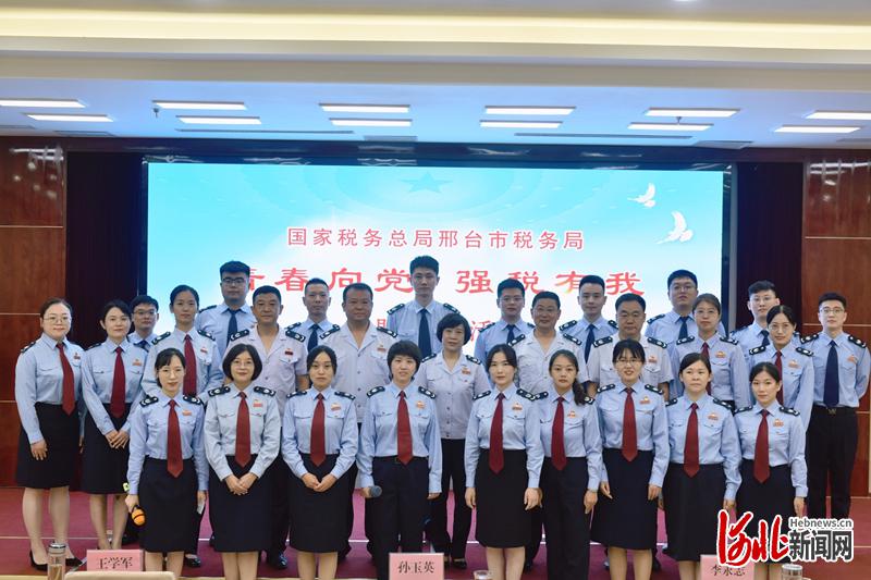 圖為邢臺(tái)市稅務(wù)局與會(huì)領(lǐng)導(dǎo)跟青年代表合影。