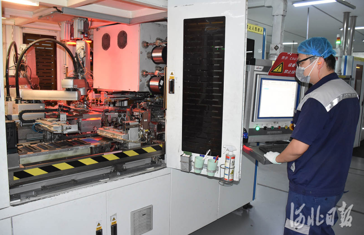 晶澳(邢臺(tái))太陽(yáng)能有限公司的焊機(jī)操作員正在調(diào)試設(shè)備。