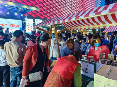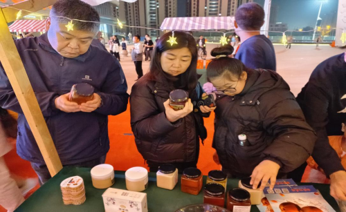 活動(dòng)當(dāng)日,愛琴海公園購物廣場上精心布置的農(nóng)產(chǎn)品展區(qū)吸引了眾多市民的關(guān)注,展區(qū)內(nèi)擺滿了各種農(nóng)產(chǎn)品,如太子井小米、抱香谷花茶、野山花蜂蜜、甘栗仁、以及蘋果脆等。這些當(dāng)?shù)靥厣r(nóng)產(chǎn)品不僅引發(fā)了市民的好奇心,也勾勒出了濃厚的地域風(fēng)情,令人感受到了這片土地的豐富歷史和文化。