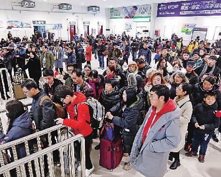 1月21日,2019年春運(yùn)大幕正式啟動(dòng)。圖為沙嶺子西站旅客正在排隊(duì)檢票進(jìn)站。武殿森攝影報(bào)道