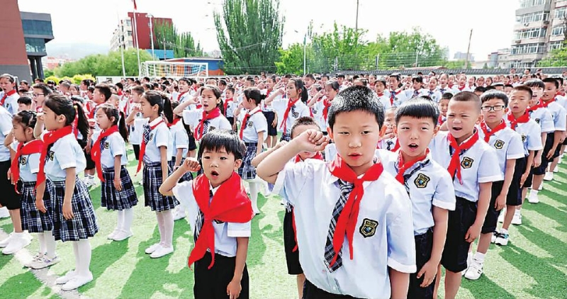 5月30日,由共青團張家口市委主辦,張家口市橋西區(qū)清河路小學(xué)承辦的“紅領(lǐng)巾獻禮祖國70周年”暨“同在隊旗下”清河路小學(xué)新生入隊儀式舉行。三年級少先隊員為一年級新隊員佩戴紅領(lǐng)巾,新、老隊員在隊旗下莊嚴宣誓,爭做新時代好少年。武殿森、郭玉敏攝影報道