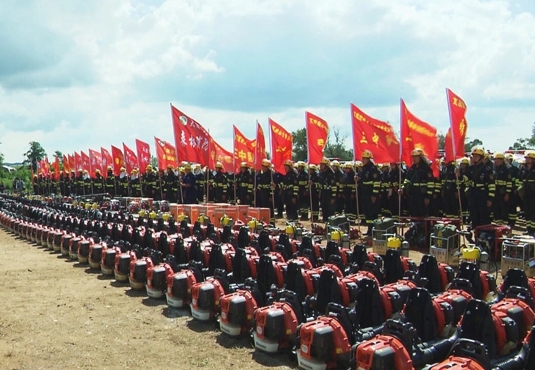 回建對(duì)公安機(jī)關(guān)為全市改革發(fā)展穩(wěn)定所作的貢獻(xiàn)以及此次誓師演練展現(xiàn)出的昂揚(yáng)斗志、熟練技能、堅(jiān)定決心予以肯定, 對(duì)全體公安干警提出殷切希望。他希望全體公安干警在摔打淬煉中鑄牢對(duì)黨忠誠的政治品格, 提高思想站位,切實(shí)把做好國慶安保工作作為樹牢 “四個(gè)意識(shí)”、堅(jiān)定 “四個(gè)自信”、做到 “兩個(gè)維護(hù)” 的現(xiàn)實(shí)檢驗(yàn), 牢記初心使命,強(qiáng)化責(zé)任擔(dān)當(dāng),發(fā)揚(yáng)斗爭精神,以實(shí)際行動(dòng)踐行對(duì)黨的絕對(duì)忠誠;希望全體公安干警在砥礪磨練中提升戰(zhàn)則必勝的實(shí)戰(zhàn)本領(lǐng),自覺把崗位當(dāng)陣地,把任務(wù)當(dāng)戰(zhàn)場,真正把平時(shí)的演練成果轉(zhuǎn)化為維護(hù)社會(huì)穩(wěn)定的現(xiàn)實(shí)戰(zhàn)斗力,全面提升技能,真正做到召之即來、來之能戰(zhàn)、戰(zhàn)之能勝;希望全體公安干警在沖鋒陷陣中鍛造敢打敢拼的過硬作風(fēng),繼承和發(fā)揚(yáng)公安機(jī)關(guān)的光榮傳統(tǒng)和優(yōu)良作風(fēng),時(shí)刻保持枕戈待旦的備戰(zhàn)狀態(tài),不怕疲勞、連續(xù)作戰(zhàn),密切配合、通力合作,堅(jiān)決擔(dān)負(fù)起政治責(zé)任,以優(yōu)異的成績向新中國成立70周年獻(xiàn)禮。他希望, “戰(zhàn)獒”突擊隊(duì)要以此次授旗為起點(diǎn),樹牢 “大戰(zhàn)用我、用我必勝”的信心和決心,切實(shí)發(fā)揮好奇兵作用,在此次國慶安保戰(zhàn)中首戰(zhàn)告捷、旗開得勝。