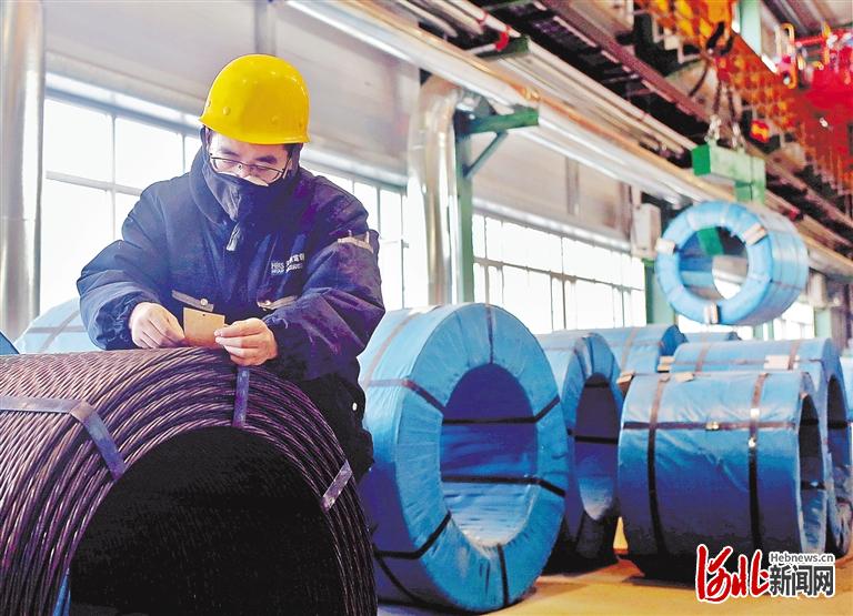 1月13日,河北張宣高科科技有限公司線材制品深加工生產(chǎn)線技術(shù)人員在檢查鋼絞線質(zhì)量。該公司在做好疫情防控的同時(shí),加強(qiáng)全流程質(zhì)量管控力度,不斷提升市場(chǎng)競(jìng)爭(zhēng)力。通訊員李巍攝影報(bào)道