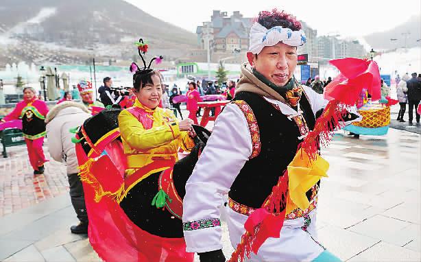 新春佳節(jié),在崇禮區(qū)太舞滑雪場,當(dāng)?shù)厝罕婇_展豐富多彩的民俗活動,與前來滑雪娛樂的游客一起歡度新春。陳亮、馬佳琦攝影報道