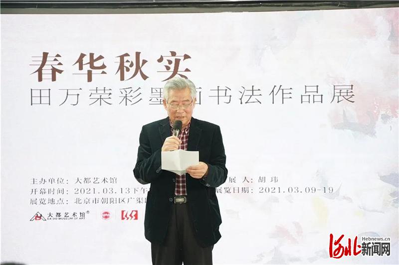 河北新聞網(wǎng)訊(張潤(rùn)海)2021年3月13日,《春華秋實(shí)——田萬(wàn)榮彩墨畫書法精品展》在北京大都藝術(shù)館開幕。此次展覽由大都藝術(shù)館主辦,國(guó)際水墨畫交流協(xié)會(huì)、中·東歐文化經(jīng)貿(mào)交流協(xié)會(huì)、競(jìng)園、中央電視臺(tái)書畫頻道等國(guó)內(nèi)外重要機(jī)構(gòu)大力支持。