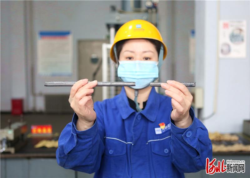 圖為河鋼宣鋼技術(shù)人員正在檢查新品線材試樣斷面收縮情況。