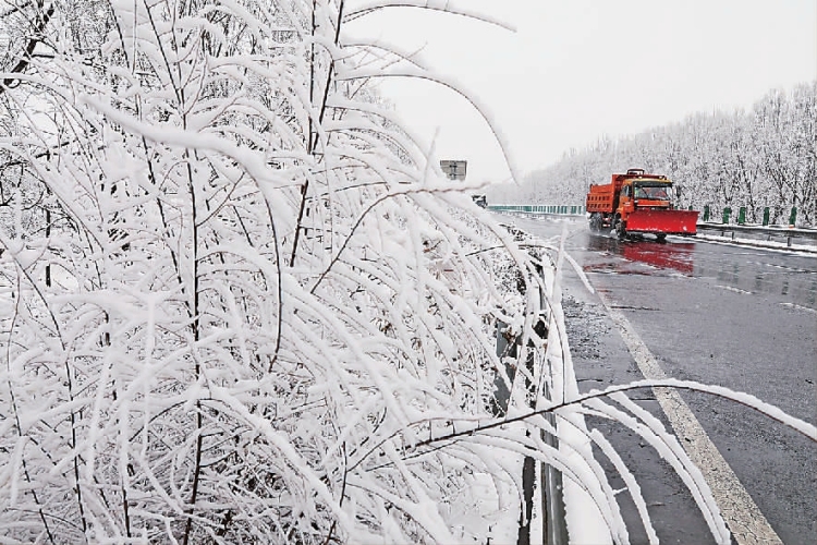 3月17日、18日,張家口市迎來大范圍降水天氣,其中壩上地區(qū)雨夾雪轉(zhuǎn)雪,局部大雪,壩下地區(qū)為雨轉(zhuǎn)雨夾雪或雪,局部中雨。降雪形成美麗樹掛,映襯得張?jiān)蟮孛啦粍偈。圖為張石高速公路蔚縣境內(nèi)。武殿森攝影報(bào)道