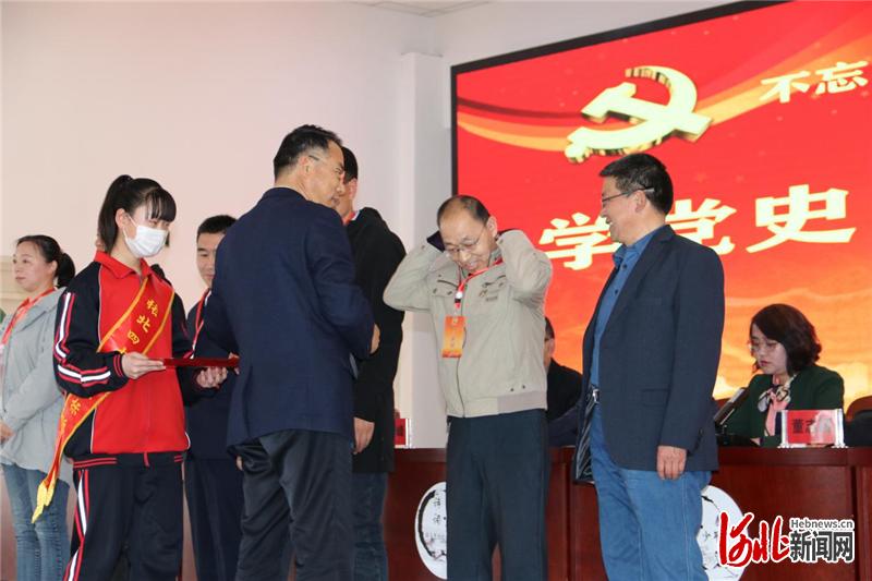 活動中,張北縣教體科局黨組書記、局長安亞平為宣講團(tuán)成員代表授牌。隨后德智中學(xué)黨支部副書記鈕占全老師為學(xué)生們上了一堂題為《傳承紅色基因,爭做時代新人》的黨史課。
