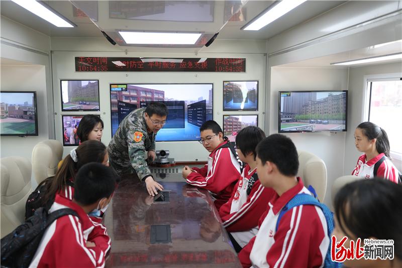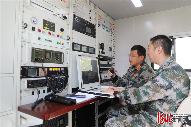 參觀河北省張家口市人防辦工作人員在機動指揮車內調度。