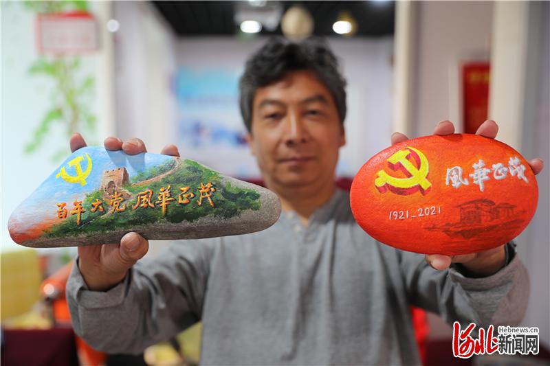 為喜迎中國共產(chǎn)黨成立100周年,河北省張家口市橋東區(qū)民間藝人、市級非遺傳承人陳智旺陸續(xù)創(chuàng)作了《紅船故事》《東方獅醒》《為什么戰(zhàn)旗美如畫》《百年大黨 風(fēng)華正茂》等石頭雕畫作品20余塊。這些作品生動還原了中國共產(chǎn)黨的優(yōu)秀兒女在爭取民族獨立、國家富強的艱苦卓絕斗爭中的偉大瞬間、光輝形象,高度贊揚了黨的豐功偉績。陳飛、岑屹攝影報道