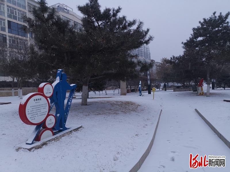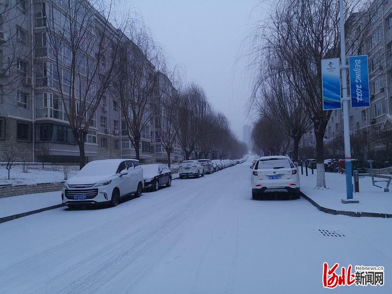 2月13日清晨,冬奧之城張家口再次迎來降雪天氣,山城銀裝素裹,為正在家門口舉辦的冬奧會增添了別樣韻味。圖為北京2022年冬奧會和冬殘奧會示范社區(qū)——張家口市橋東區(qū)東方苑社區(qū)東方苑小區(qū)雪景。河北日報記者王雪威攝