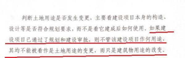 用“改變建筑物用途”替換“改變土地用途”,這一招文字游戲頗為高明,將法律法規(guī)對土地用途的明確限制,消解于無形。但所謂土地用途,理應(yīng)指的是最終實際用途。建筑物建成什么樣子,并不代表它就是何種用途。法律之所以沒有規(guī)定“改變建筑物用途”如何處理,不是因為存有漏洞,而是因為這本身就屬改變土地用途的表現(xiàn)形式。