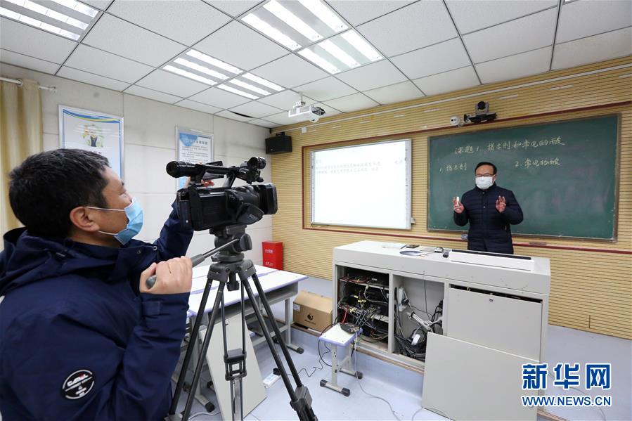 一名教師在作網(wǎng)絡(luò)直播(2月7日攝)。新華社發(fā)