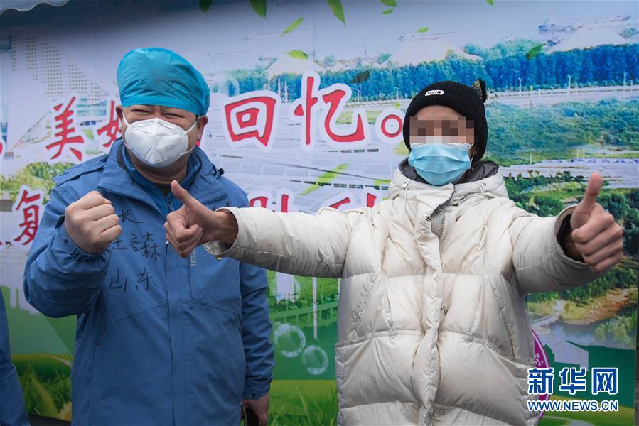 治愈患者向醫(yī)護人員表達謝意(2月21日攝)。新華社記者 肖藝九 攝