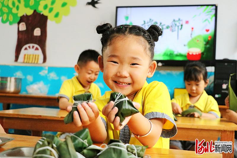 平鄉(xiāng)縣直一幼孩子在展示新包的粽子。