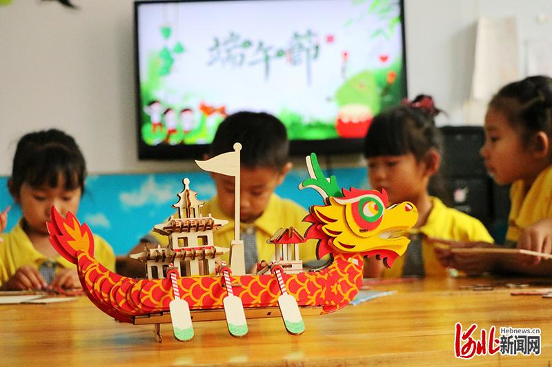 平鄉(xiāng)縣直一幼孩子在學(xué)做手工龍舟。