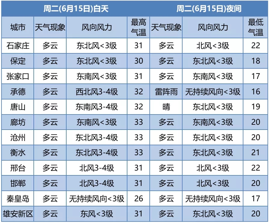 14日夜間到15日,唐山、秦皇島和石家莊、滄州及以南地區(qū)陰有雷陣雨或陣雨轉(zhuǎn)多云,其他地多云。