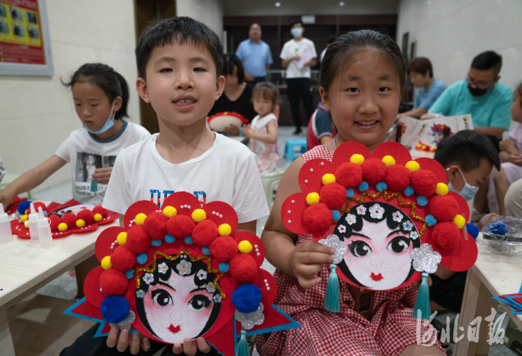 2021年6月12日,在河北省黃驊市博物館,小朋友正在展示制作的京劇臉譜。當(dāng)日是端午節(jié)小長(zhǎng)假第一天,該市博物館舉行“做臉譜 識(shí)國(guó)粹”社教活動(dòng)。博物館工作人員給孩子們講解了有關(guān)京劇的文化、臉譜的由來(lái)、鹽商與戲曲的關(guān)系等知識(shí)。并讓孩子們和家長(zhǎng)一起動(dòng)手制作京劇臉譜,感受中國(guó)傳統(tǒng)文化的魅力。通訊員 張國(guó)文 攝影報(bào)道