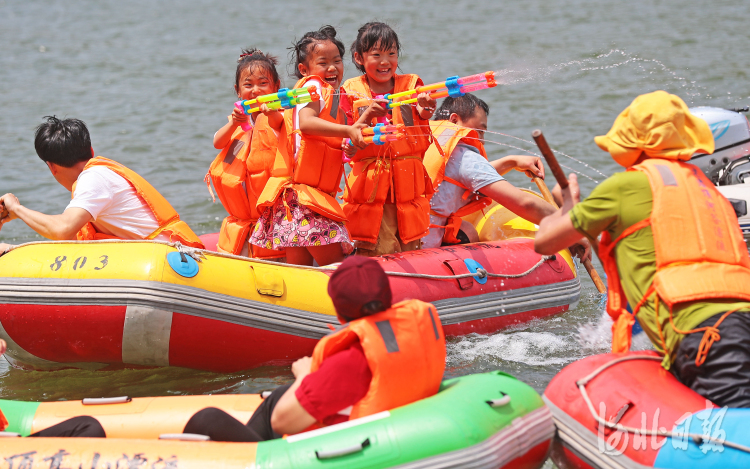 2021年6月12日,游客在秦皇島市海港區(qū)老君頂景區(qū)打水仗。當(dāng)日是端午小長(zhǎng)假第一天,在位于秦皇島市海港區(qū)石門(mén)寨鎮(zhèn)房莊村的老君頂景區(qū),眾多游客來(lái)到這里體驗(yàn)觀賞水上項(xiàng)目,樂(lè)享休閑假日。 通訊員 曹建雄 攝影報(bào)道