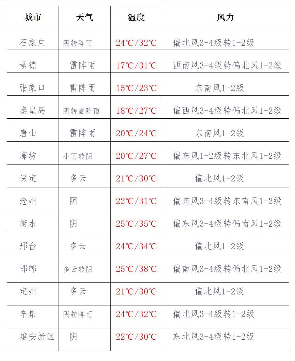 河北省主要城市預(yù)報