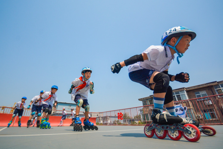 2021年6月23日,河北省邯鄲市邯山區(qū)實(shí)驗(yàn)小學(xué)學(xué)生練習(xí)輪滑。