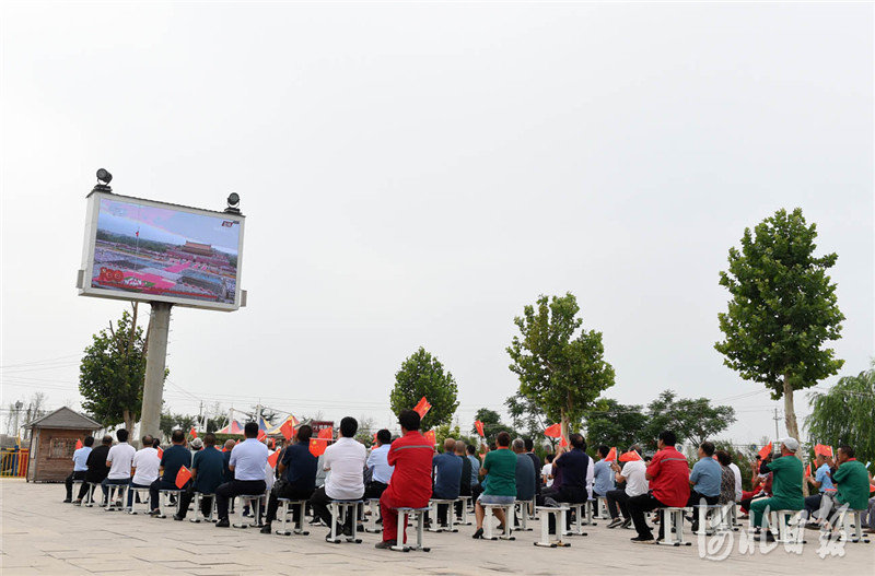 2021年7月1日,全國先進基層黨組織——河北省寧晉縣賈家口鎮(zhèn)黃兒營西村黨委,組織黨員群眾在新時代教育實踐基地廣場收看慶祝中國共產(chǎn)黨成立100周年大會直播。河北日報記者趙永輝攝影報道