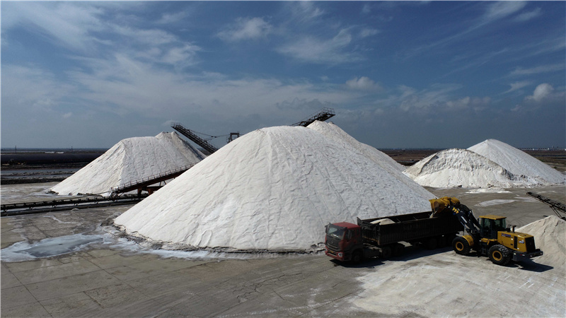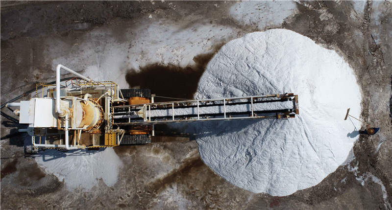 近日,河北省唐山市海港經(jīng)濟(jì)開發(fā)區(qū)長蘆大清河鹽場春季收鹽工作接近尾聲,工人搶抓晴好天氣加緊作業(yè),扒鹽機(jī)和收鹽車輛在鹽池中往來穿梭,一派繁忙景象。新華社發(fā)(李磊 攝)