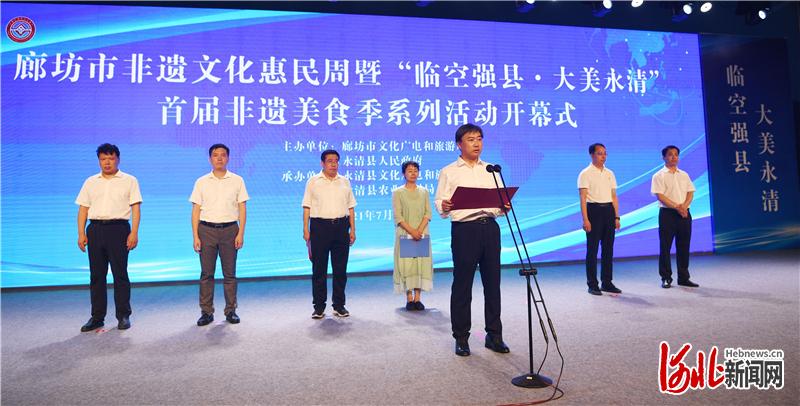 7月23日,廊坊市首屆非遺文化惠民周暨“臨空強縣·大美永清”首屆非遺美食季系列活動開幕。圖為開幕式現(xiàn)場。通訊員劉欣羽攝