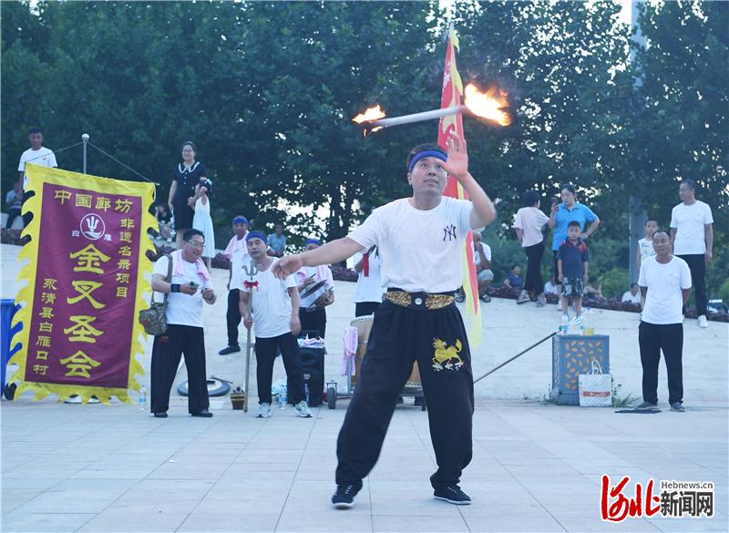 河北新聞網(wǎng)訊(通訊員劉欣羽、劉瑞濤、周禹佳)葛漁城重閣會、東沽港中幡、白雁口金叉圣會、勝芳高蹺......7月23日晚,永清縣生態(tài)公園人潮涌動,一項項廊坊非遺文化在這里精彩上演,為廊坊市首屆非遺文化惠民周暨“臨空強縣·大美永清”首屆非遺美食季系列活動拉開帷幕。