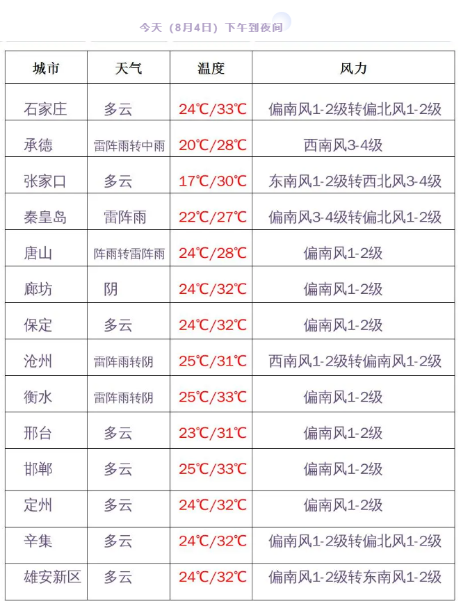 (河北省氣象臺(tái)2021年8月4日11時(shí)發(fā)布天氣預(yù)報(bào))