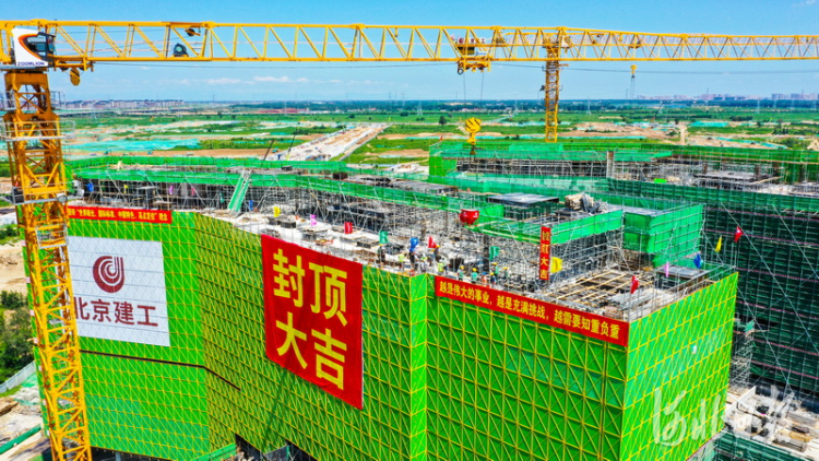 當(dāng)日,北京市支持雄安新區(qū)建設(shè)醫(yī)院項(xiàng)目——雄安宣武醫(yī)院工程主體結(jié)構(gòu)封頂。這是北京市支持雄安新區(qū)建設(shè)的“三校一院”交鑰匙工程中體量最大的工程,也是雄安新區(qū)第一座大型三級甲等醫(yī)院。工程占地面積13.17公頃,總建筑面積12.2萬平方米,包括門診樓、醫(yī)技樓、住院樓、科研樓等,建成后將成為擁有600個(gè)床位的綜合性醫(yī)院。 河北日報(bào)記者耿輝攝影報(bào)道