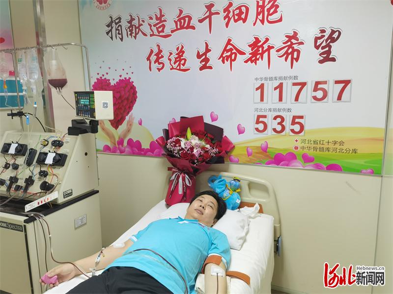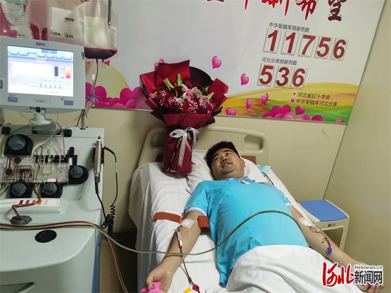 劉孝偉正在捐獻造血干細胞。 中華骨髓庫河北分庫供圖