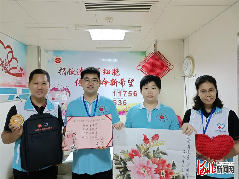 河北省紅十字會捐獻造血干細胞志愿服務(wù)大隊志愿者為劉英哲、劉孝偉送來關(guān)愛禮物。 中華骨髓庫河北分庫供圖