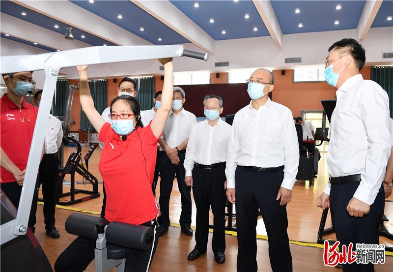 8月6日,省長許勤到省體育局調(diào)研并主持召開省冬奧工作領(lǐng)導(dǎo)小組指揮調(diào)度視頻會議。這是許勤來到省體育局調(diào)研數(shù)字化體能訓(xùn)練康復(fù)工作,聽取東京奧運(yùn)會參賽、全運(yùn)會備戰(zhàn)等情況介紹。 河北日報(bào)記者 孟宇光攝