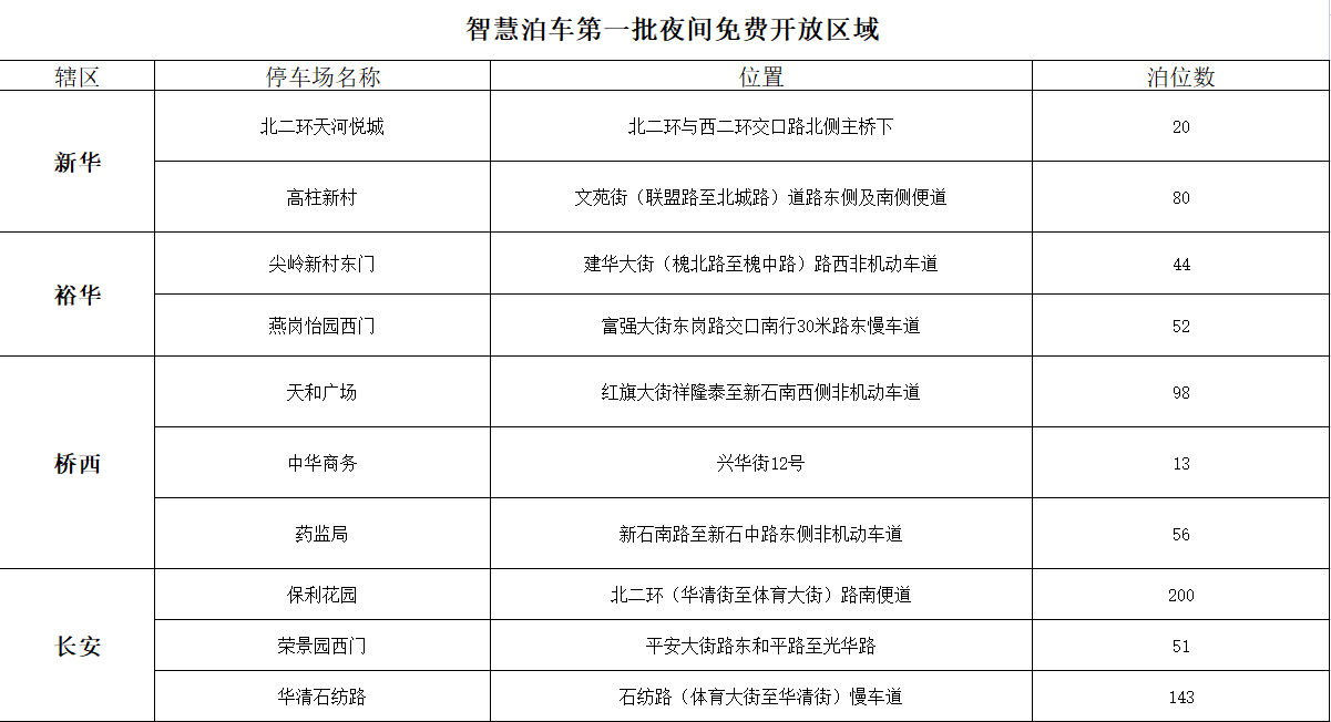 智慧泊車首批夜間免費區(qū)域分布