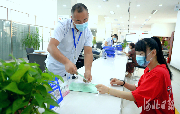 2021年8月6日,河北省博野縣行政審批局工作人員為商戶辦理業(yè)務(wù)。 通訊員張錦楠攝影報(bào)道