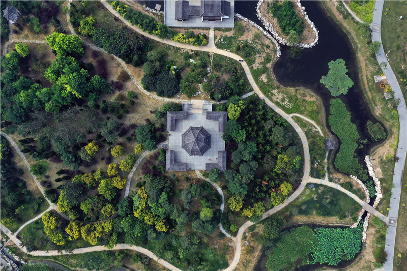 這是8月11日拍攝的河北省河間市瀛州公園景色(無人機(jī)照片)。