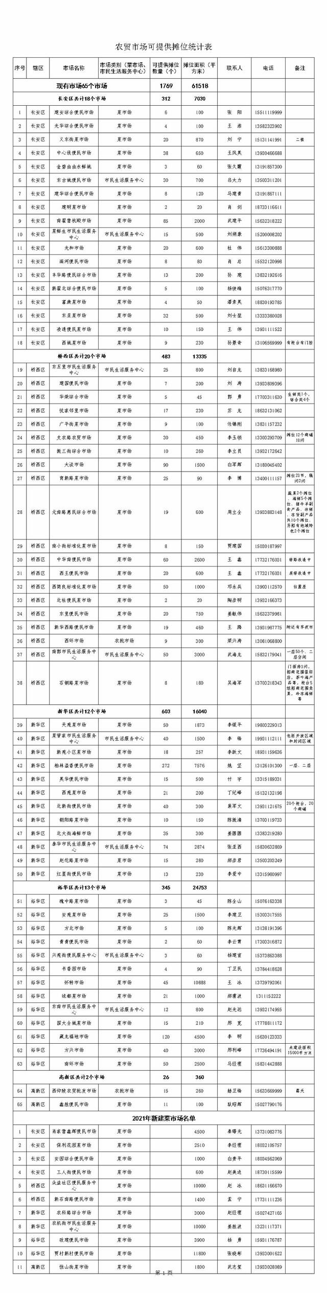 據(jù)初步統(tǒng)計,市內(nèi)5區(qū)65家農(nóng)貿(mào)市場,通過整合優(yōu)化可提供經(jīng)營攤位1769個。同時,2021年石家莊市主城區(qū)新建11家菜市場,新增營業(yè)面積50000平方米,可增加經(jīng)營攤位約1000余個。這些便民市場可以優(yōu)先為拆除私搭亂建,清理占道市場等急需經(jīng)營場所的商戶提供攤位或鋪位,解決商戶經(jīng)營燃眉之急,同時也為廣大市民提供更多、更好、更方便的服務。