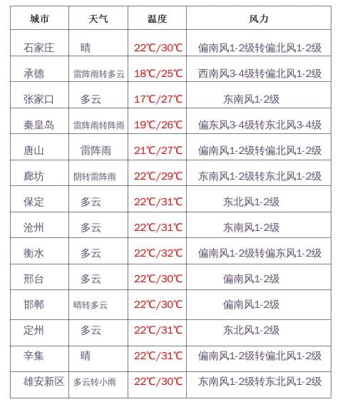 明天(8月17日)夜間到18日,張家口、保定、石家莊、邢臺西部、邯鄲西部多云轉(zhuǎn)陰有雷陣雨或陣雨,其他地區(qū)多云。