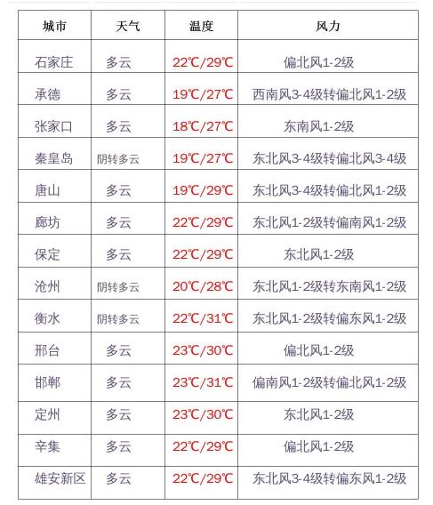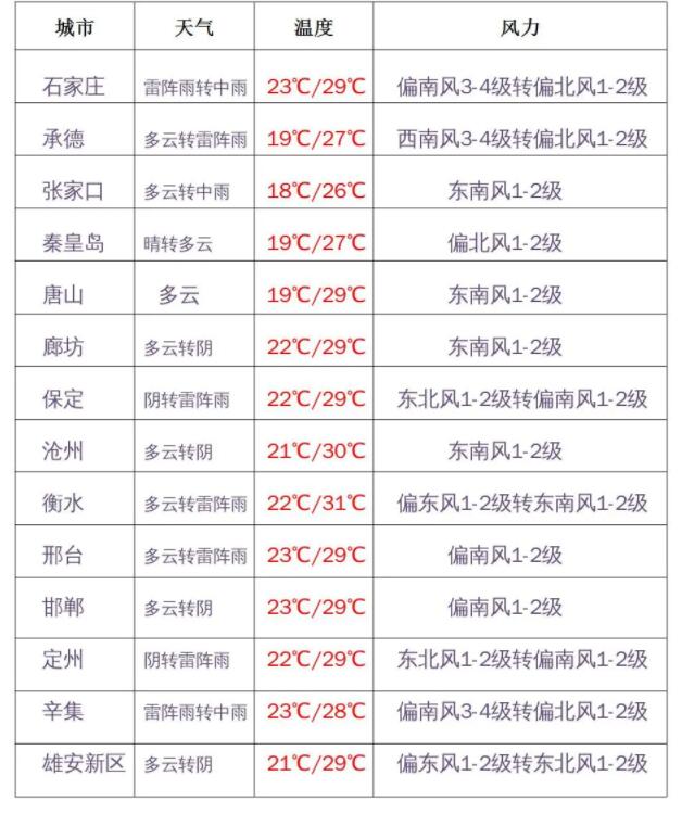 今天下午到夜間,保定、廊坊及以北地區(qū)和滄州多云間陰有雷陣雨或陣雨,局地有中到大雨,個(gè)別地點(diǎn)有暴雨,雷雨時(shí)局地伴有短時(shí)強(qiáng)降水、短時(shí)大風(fēng)等強(qiáng)對流天氣;其他地區(qū)晴間多云。