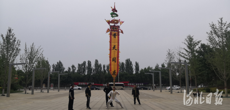 圖為香河縣新城核心區(qū)的文化藝術(shù)中心廣場,一場精彩絕倫的安頭屯中幡表演正在進(jìn)行。河北日報記者解楚楚攝