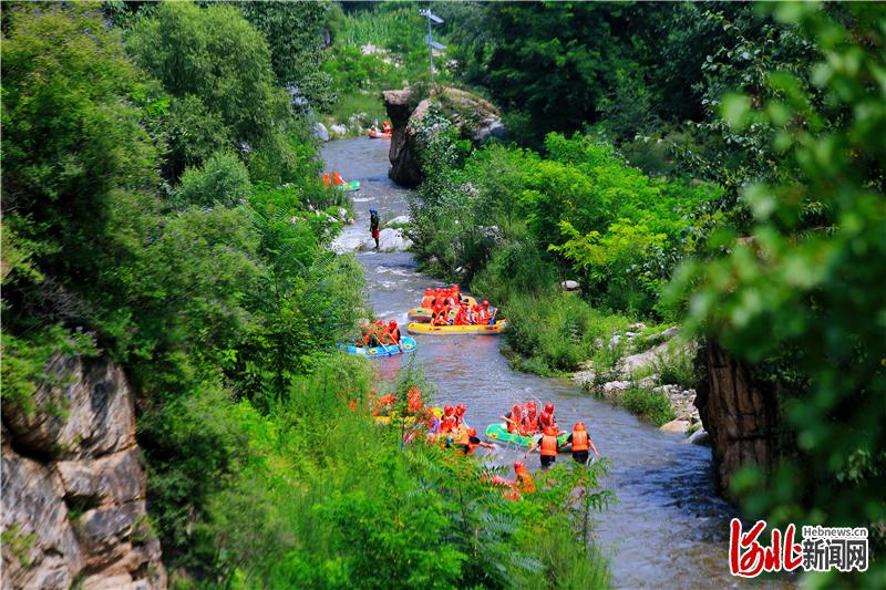近日,游客在阜平縣云花溪谷景區(qū)漂流。 通訊員 孟施恩 攝