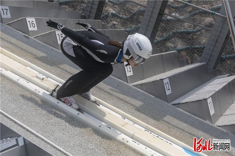 圖為運(yùn)動(dòng)員在淶源國家跳臺(tái)滑雪訓(xùn)練科研基地訓(xùn)練。 通訊員 羅大慶攝