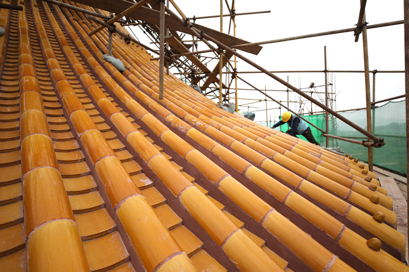 今年,河北省承德市對全國重點文物保護單位普樂寺開展預防性保護修繕施工,重點對旭光閣、山門殿、天王殿、宗印殿房頂瓦面等部位進行查補和勾抹掃壟。目前,工程進展順利。新華社發(fā)(劉環(huán)宇攝)