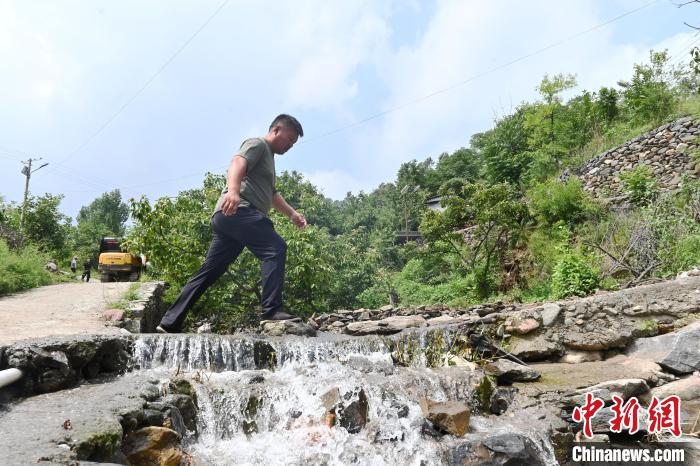 8月10日,郝立杰在村內(nèi)存在安全隱患的區(qū)域進行巡查。 中新社記者 翟羽佳 攝