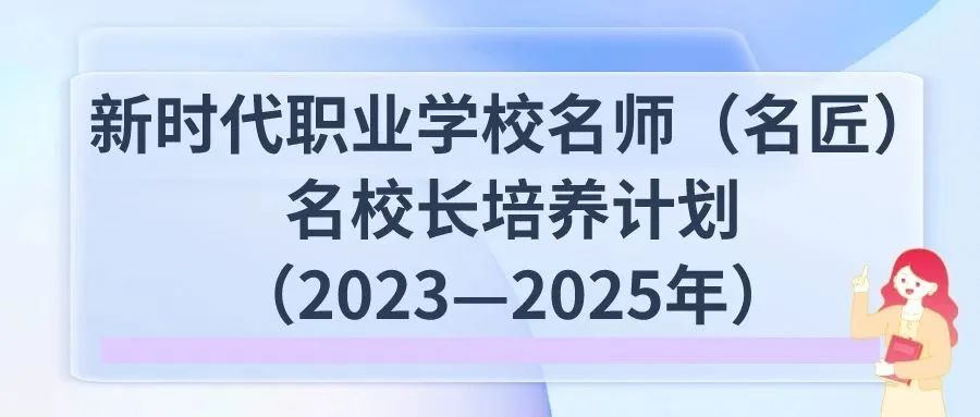 新時(shí)代職業(yè)學(xué)校名師(名匠)名校長培養(yǎng)計(jì)劃(2023—2025年)(簡稱職教“三名”計(jì)劃),是以3年為一個(gè)培養(yǎng)周期,遴選職業(yè)學(xué)校骨干教師、校長進(jìn)行專項(xiàng)培養(yǎng),旨在打造一批理想信念堅(jiān)定、師德高尚、教育教學(xué)能力和專業(yè)實(shí)踐能力突出的雙師型名師(名匠),一批辦學(xué)理念先進(jìn)、辦學(xué)定位準(zhǔn)確、勇于開拓創(chuàng)新、精通現(xiàn)代職業(yè)學(xué)校治理的教育家型名校長。通過建立推薦、培養(yǎng)、管理、使用一體化的培養(yǎng)體系和管理機(jī)制,搭建國家級名師、名校長工作室和名匠技藝技能傳承創(chuàng)新平臺,發(fā)揮名師(名匠)名校長示范引領(lǐng)作用。