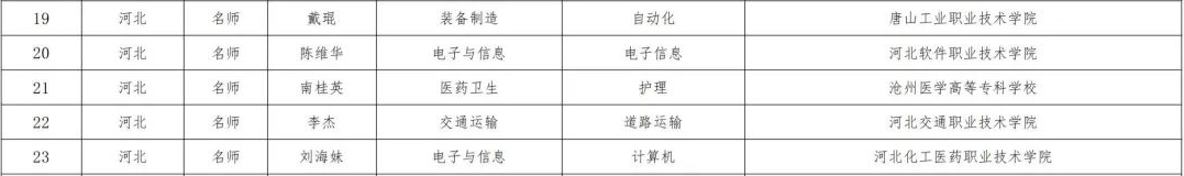 近日,教育部公布新時(shí)代職業(yè)學(xué)校名師(名匠)名校長培養(yǎng)計(jì)劃(2023—2025年)培養(yǎng)對象和培養(yǎng)基地名單。河北共有8名教師、2名校長入選。