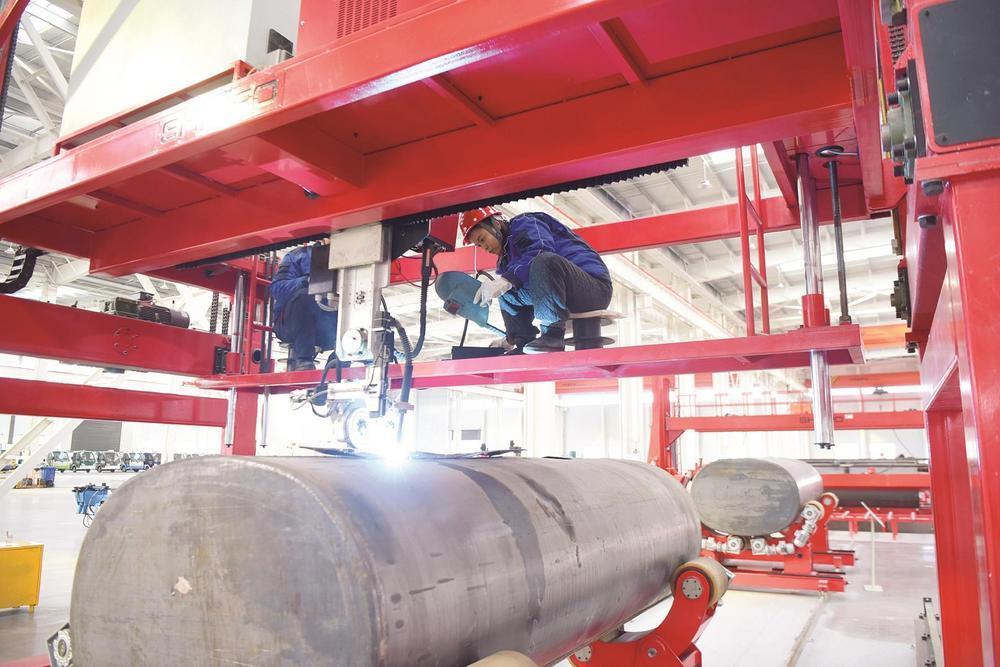 廣平經(jīng)濟(jì)開發(fā)區(qū)邯鄲極馳汽車股份有限公司生產(chǎn)車間里工人正在檢測(cè)全自動(dòng)罐體焊接。